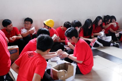 Bertukar kado antar warga sekolah pada Perayaan Imlek SMA Sinar Dharma